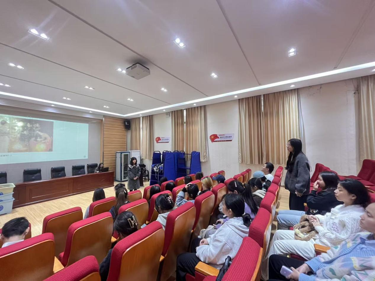 讲座中,梅树树老师以“陈衍宁绘画作品赏析”为核心,从艺术与理科的关联切入,打破“绘画仅属文科”的传统认知——通过解析素描与解剖学、构图与数学计算、阴影与几何空间的联系,让听众理解绘画背后的理性逻辑。随后,梅老师聚焦陈衍宁的《无题(元宵节)》,从空间(近实远虚的纵深感)、色彩(暖色调烘托节日氛围)、神韵(东方女性韵味与代际温情)三个维度,细致拆解作品如何以西方油画技法呈现中国传统民俗与人文情感,生动诠释“中西艺术融合”的实践路径。